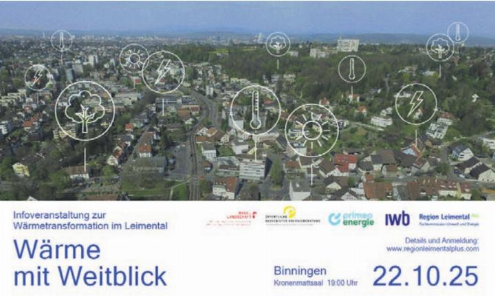 16.10.2025 LeimentalDie Gemeinden der Region Leimental Plus veranstalten nächste Woche am Mittwoch, 22. Oktober, in Binningen eine weitere Infoveranstaltung zum Thema Wärmetransformation im Leimental. Denn: Bis 2050 sollen fossile Energieträger zum Heizen, Kochen und für die Stromproduktion – also Lösungen mit Erdgas und Öl – durch Systeme mit erneuerbaren Energieträgern ersetzt werden. Stattdessen setzen wir auf erneuerbare Energien, um das Netto-Null des Bundes zu erreichen. Einerseits ist dies eine Chance für mehr regionale Produktion, Versorgungs- und Planungssicherheit, andererseits aber auch eine Herausforderung, weil Eigentümerinnen und Eigentümer den Umstieg vorausschauend aufgleisen müssen. Die Region Leimental Plus unterstützt Sie dabei. Nutzen Sie diese Chance: Informieren Sie sich, fragen Sie Fachpersonen vor Ort und planen Sie den Wärmeumstieg für Ihre Liegenschaft.