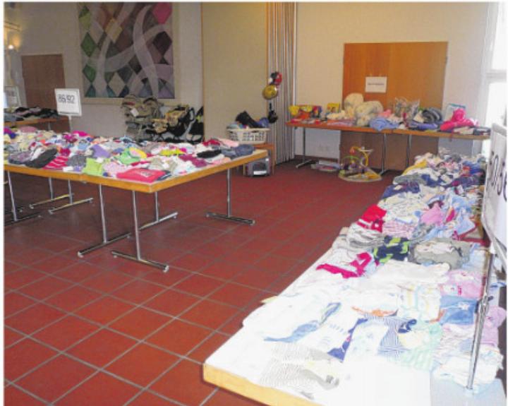 Wir verkaufen für Sie gut erhaltene, zeitund saisongemässe Kinderkleider, Sportartikel, neuwertige Kinderschuhe, Kinderzubehör und auch grössere Spielsachen. Der Mindestverkaufswert beträgt Fr. 2.–. Günstigere Artikel nehmen wir als Frankenkorb-Spende entgegen. Was im Frankenkorb übrig bleibt, wird dem Spendenladen in Therwil gespendet. Vom Verkaufspreis der Artikel werden 20 % zugunsten der ref. Kirche Ettingen abgezogen. Maximal 40 Artikel pro Person Grösse 50–176, inkl. Spielsachen.