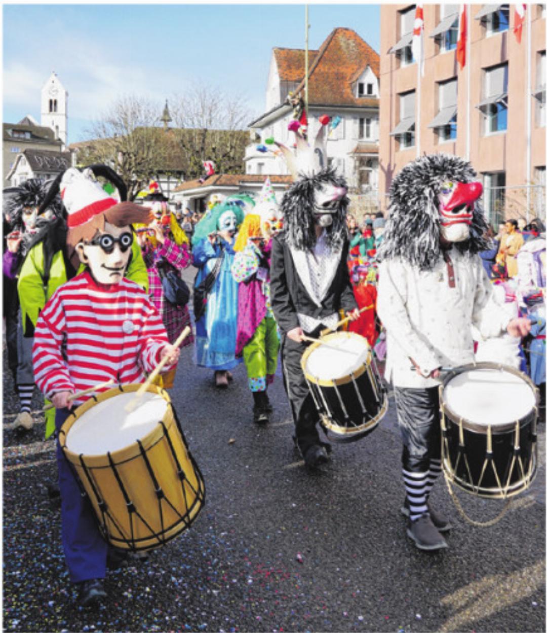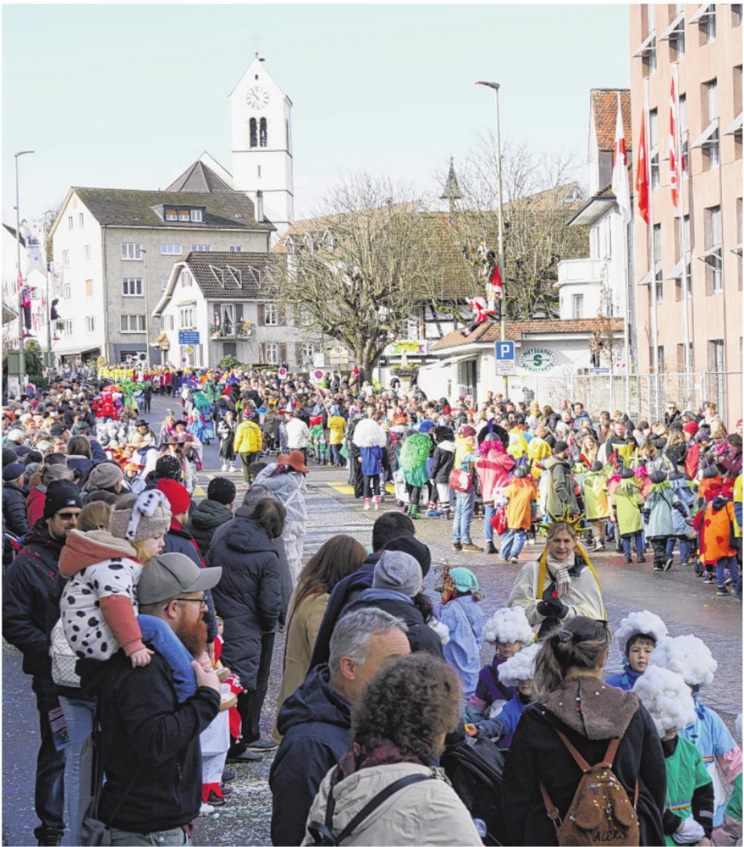 Kurz vor den 10 Uhr-Schlägen der Dorfkirche beginnen die Horburgschlurbi in ihren Gefängniskostümen und die gemischte Gugge an zu schränzen. Bei den Fischen dahinter bleibt keine Flosse mehr still. Endlich dürfen sie los, die an verschiedenen Standorten aufgeregten Kindergarten- und Schulkinder von Oberwil. Auch die Tambouren und Pfeiferinnen legen los. Die Trottoirs der Hauptstrasse entlang sind von Hunderten Menschen dicht gesäumt. Es ist ein prächtiger Morgen. Sogar die Sonne lässt sich pünktlich zum Fasnachtstreiben wieder einmal blicken.