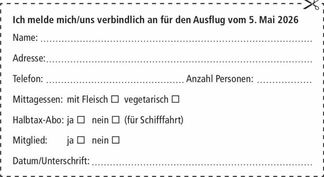 Ausflug für Seniorinnen und Senioren am Dienstag, 5. Mai 2026