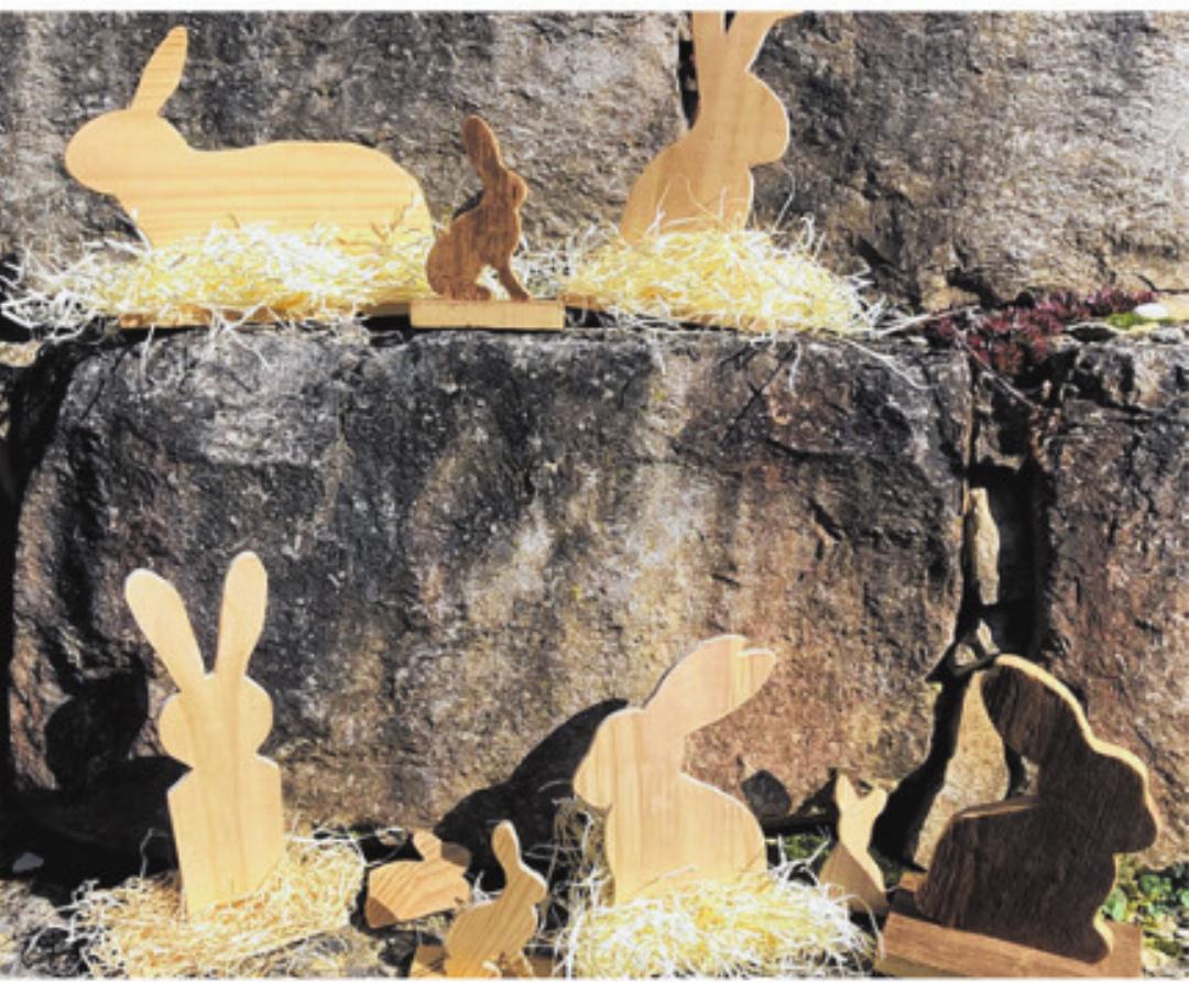 Am Stand von Diversicum leuchten sicher die schönsten Blumen, bei Felix ist es nicht so bunt, aber österlich: Es hat Hühner, Hasen, gedrechselte Eier aus verschiedensten Hölzern und fruchtige Gomfi fürs Osterzmorge.