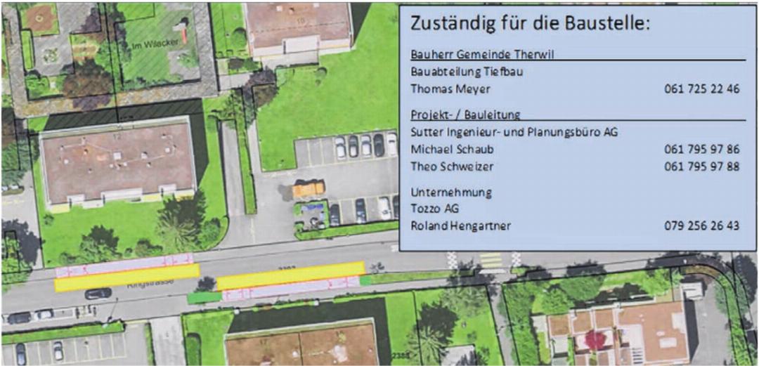 Im Namen der Gemeinde Therwil bitten wir Sie höflich um Kenntnisnahme für die anstehenden Bauarbeiten.