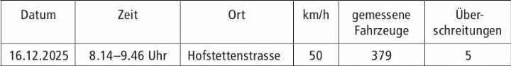 Die Polizei Basel-Landschaft führt für die Gemeinde Ettingen regelmässig Radarkontrollen auf Gemeinde- und Kantonsstrassen durch. Die Ergebnisse der Messungen können Sie nachstehender Tabelle entnehmen:
