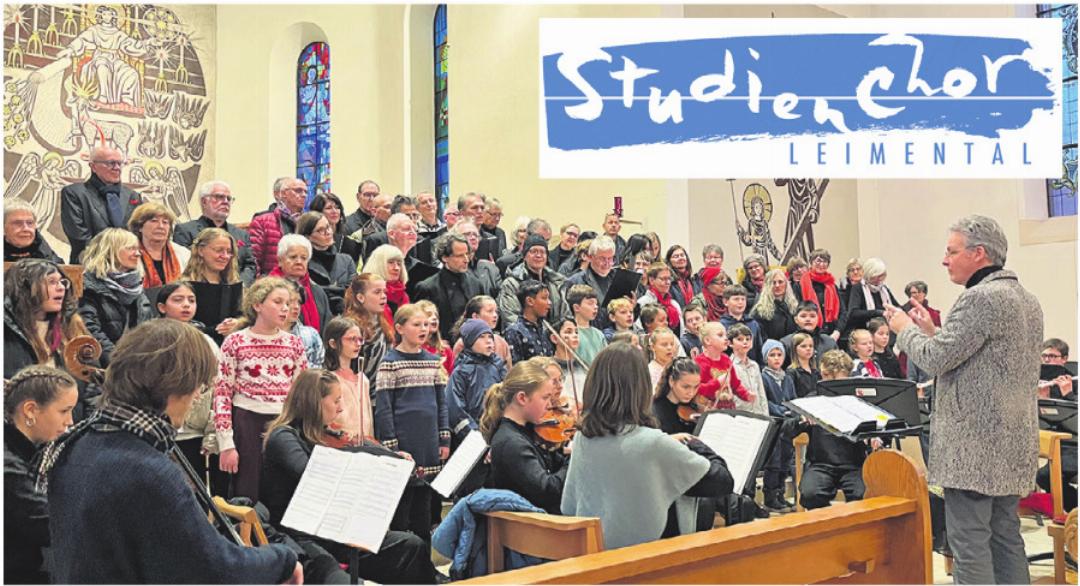 Mit dem alten Lied «Maria wurde ein Bote gesandt» beschrieb der Chor eindrucksvoll den Anfang der Weihnachtsgeschichte und die Kinder luden freudvoll in die Backstube mit «Zimetschtärn hani gärn» ein. Ihre Lieder studierten die Lehrpersonen Priska Rietmann, Alexandra Ringier, Aline Stoll Guillaume und Vreni Zimmermann gut mit ihnen ein. Mit einem Lächeln auf dem Gesicht sang das Publikum bei traditionellen Liedern wie «Oh Heiland reiss die Himmel auf» mit. Viel zur festlichen Stimmung trug auch das kleine Musikensemble bei. Der Chor rief auf mitzukommen mit «Lasset uns nun gehen nach Bethlehem» und mit «Fallt mit Danken, fallt mit Loben», das Weihnachtswunder versuchen zu begreifen. Beide Stücke sind aus Bachs «Weihnachtsoratorium», das der Studienchor Leimental im Dezember 2026 vollständig aufführen wird.