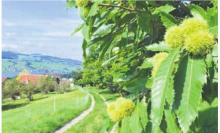 Wir starten auf dem Rigi-Chestene-Weg in Küssnacht, wandern zur Gesslerburg und entdecken die ersten prächtigen Edelkastanienbäume und -baumgruppen. Im Westen geniessen wir den wunderbaren Höhenblick auf den Küssnachter Arm des Vierwaldstättersees. Im Osten erhebt sich die Rigi mit der Seebodenalp.