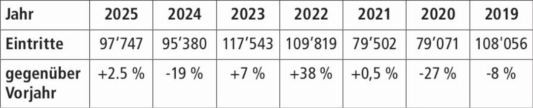 Durch die warmen Tage im Mai startete das Gartenbad beim Schloss Bottmingen gut in die Saison 2025. Der Monat Juni war von überdurchschnittlich hohen Temperaturen geprägt. Zu Beginn der Schulsommerferien setzte eine kühlere und regnerische Wetterphase ein. Im August kehrten die sommerlichen Temperaturen zurück. Der Saisonabschluss war hingegen durch zunehmende Niederschläge gekennzeichnet. Insgesamt kann von einer durchschnittlichen Saison gesprochen werden. Die Rekordzahlen aus dem Jahr 2023 konnten nicht erreicht werden. Das Verhältnis von Jahreskarten zu Einzeleintritten blieb im Vergleich zum Vorjahr weitgehend unverändert.