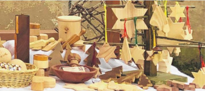 Am Stand von Felix Wiesner gibt es Konfi und Gelée aus Früchten aus dem Garten. In seiner Werkstatt sind Sterne und Tannen, aber auch Racletteschaber und Brettli in allen Grössen entstanden. Wie üblich hat er auch Mottenkugeln, Hackschalen, Pfeffermühlen, Türstopper usw. sowie gedrechselte Miniaturen für den Weihnachtsbaum von Peter Luisoni dabei.