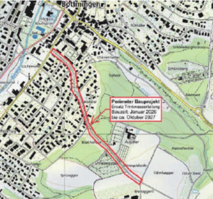 Die Transportleitung in der Talholzstrasse versorgt Bottmingen mit Trinkwasser aus dem Grundwasserschutzgebiet Reinacher Heide. Die Leitung stammt aus dem Jahr 1938. Sie hat ihre Nutzungsdauer erreicht und muss erneuert werden. Im Zuge der Projektierung werden weitere Werkbetreiber (namentlich IWB, Primeo, interGGA sowie Wasserversorgung und Tiefbauabteilung der Gemeinde Bottmingen) Erneuerungen und Ausbauten in der Talholzstrasse durchführen.