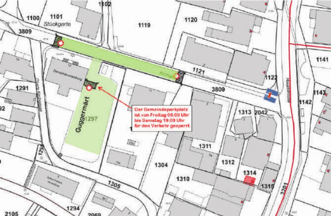 Auf dem Gemeindeparkplatz ist das Parkieren von Fahrzeugen bereits ab Freitag, 6 Uhr, bis Samstag, 19 Uhr, untersagt. Rechtswidrig parkierte Fahrzeuge werden auf Kosten des Halters abgeschleppt.